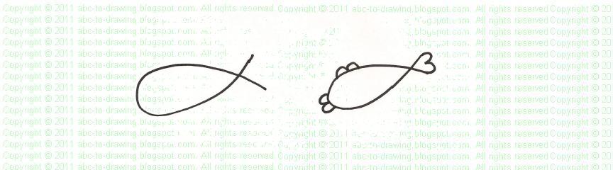 - Now write a small U for the body fin. Writea series of bent I to make face and stripes.